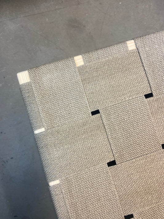 Udendørsbænke og skamler flettet med gamle sikkerhedsseler. Stellet er lavet af frasorteret...