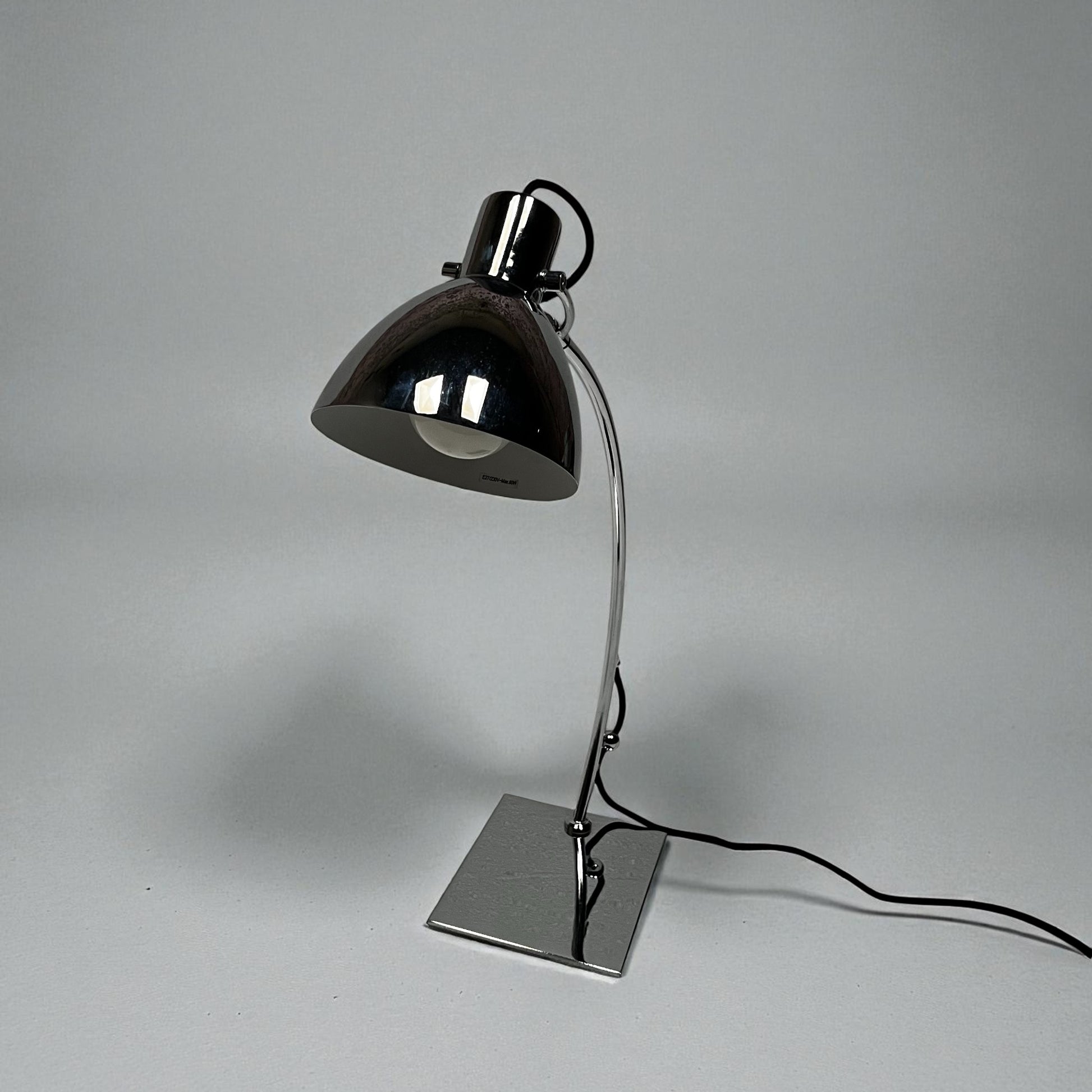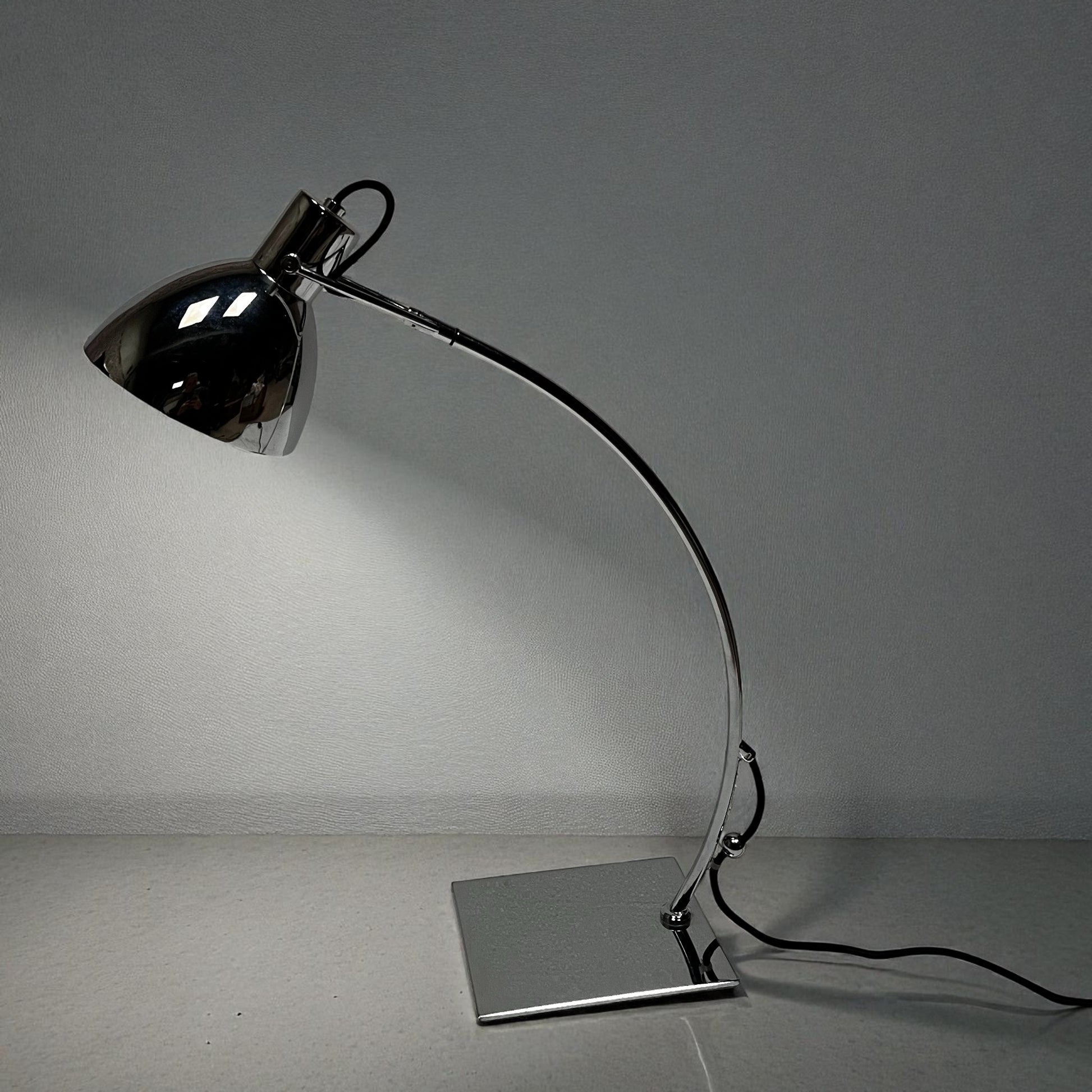 Elegant bordlampe fra Seed Lighting, model SQ-893MDTE, i poleret krom med buet arm og justerbar skærm.